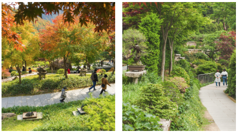 - 봄: 철쭉진달래원, 탐매원, 자작나무숲, 암석 하경정원, 장미원, 추억의 정원길