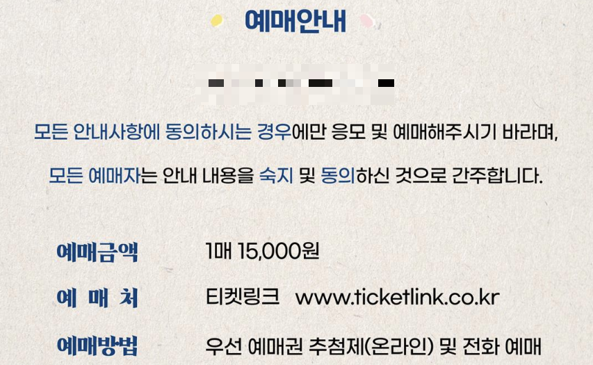 ※ 티켓링크에 등록된 핸드폰 번호를 최신 정보로 업데이트하여야 문자를 받을 수 있으며, 당첨은 최종 확정이 아닙니다.
