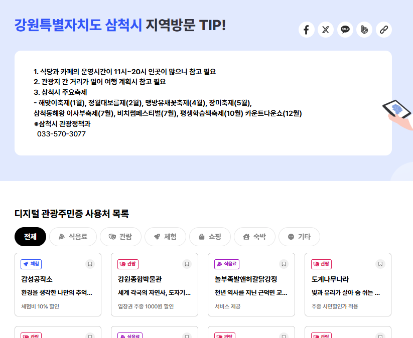 다른 지역의 더 많은 혜택과 여행 팁은 디지털 관광주민증 공식 홈페이지에서 지금 바로 확인하실 수 있습니다.