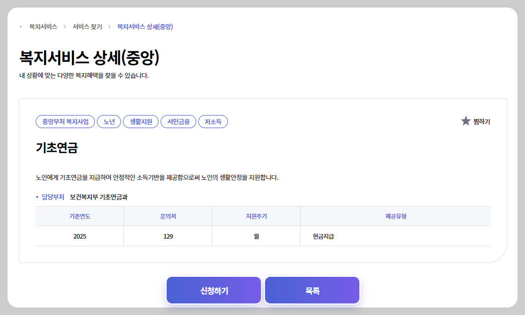 ✔ 수급대상: 만 65세 이상 국내 거주자
