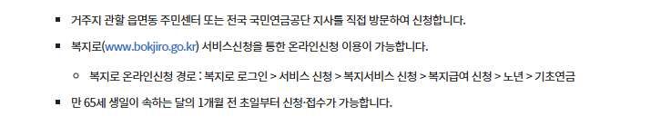 ✔ 신청방법: 주민센터 방문 or 복지로/정부24/국민연금공단 온라인 신청